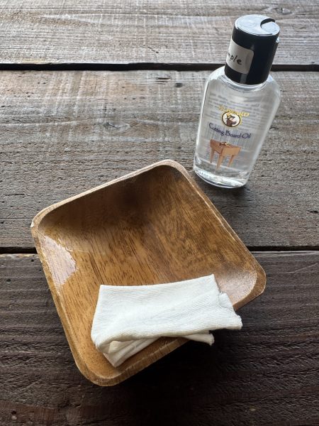 ConTennaで使っている木製トレイを、HOWARD社の「カッティングボードオイル」でお手入れしてみました。