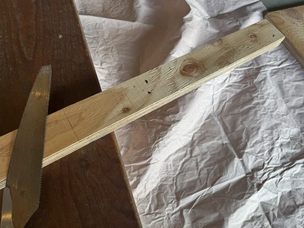 ギコギコとノコギリで切って、すこし切り口が斜めになっちゃいましたが、自宅用なので気にせず進めます。