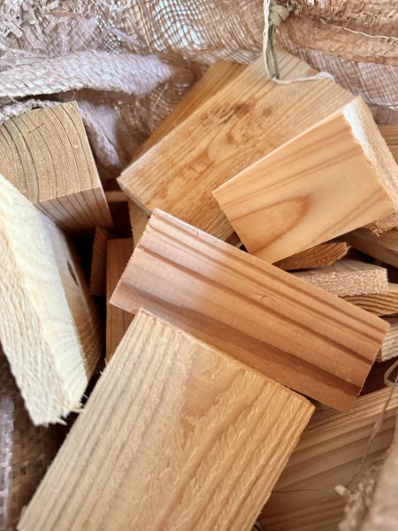鉢カバーやベンチなど、手作りアイテムが多数。